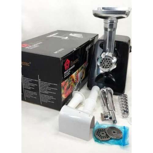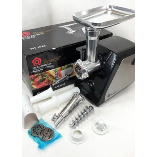 Кому довірити справи на кухні? Перед вами не просто м'ясорубка, а багатофункціональний, компактний, високоефективний та надійний помічник на кухні. Бургери, ковбаски, домашні сосиски - все це диво Вам запросто накрутить наша м'ясорубка DOMOTEC MS-2023 вона готова взятися за найскладніші завдання: подрібнити, прокрутити і перетворити м'ясо в ніжний фарш. М'ясорубка має класичний дизайн, який чудово буде виглядати. Потужність приладу становить 3000 Вт. Модель DOMOTEC MS-2023 має кілька корисних функцій: Захист від перегріву - система двигуна буде сама контролювати свою роботу і попереджати можливе перевантаження або перегрів, що забезпечує довговічність приладу та мінімізацію його поломки. Реверс – дана функція значно полегшує подрібнення м'яса та приготування фаршу, знижує навантаження на насадки, ножі та навіть двигун. Крім цього, реверс полегшує процес догляду за м'ясорубкою. Ваш прилад працюватиме набагато ефективніше, довше та м'якше, підтверджуючи свою зносостійкість. М'ясорубка обладнана всіма необхідними насадками та комплектуючими, а саме: 3 грати для фаршу, насадка для ковбас, насадка для кеббе, а також насадка для томатів.
