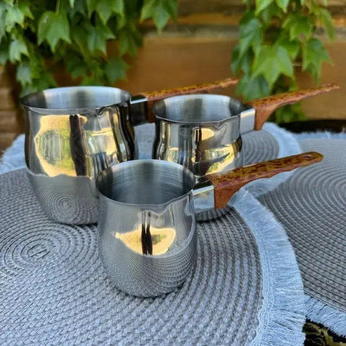 Набір турків Edenberg EB-18071 виконаний з нержавіючої сталі, яка чудово утримує температуру та безпечна для здоров'я. Кава, зварена в турці, відрізняється досить насиченим смаком і густою консистенцією з невеликою кількістю часток кави (гущі). У напої залишаються майже всі речовини, що містяться в обсмаженому кавовому зерні. Приготування кави в турці - один із найдавніших методів заварювання кави, тому рецептів кави по-східному дуже багато: вони можуть відрізнятися і використанням додаткових інгредієнтів, технологією приготування і подачею кави.