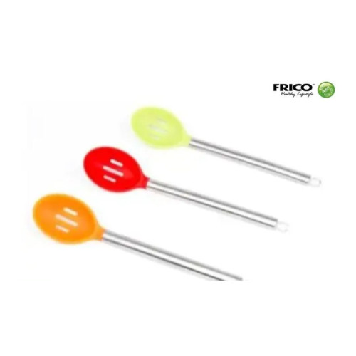 Робоча поверхня ложки Frico виготовлена із силікону, оснащена отвором для підвішування. Матеріал не вбирає запахи, не змінює смаку продуктів, екологічно чистий, не містить шкідливих та токсичних речовин.