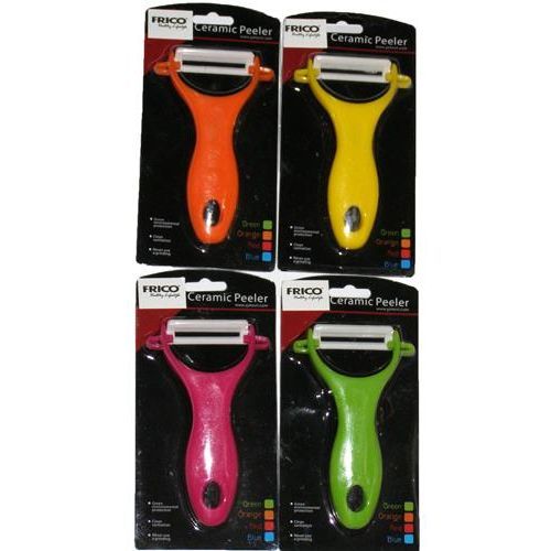 Яскрава овощечистка дозволить Вам швидко і легко почистити овочі або фрукти. Плаваюче лезо ножа виконано з якісної кераміки. Ергономічна ручка зроблена з міцного пластику.