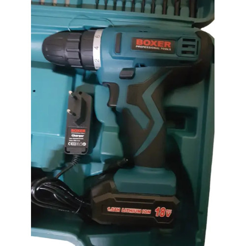Цей професійний акумуляторний дриль BOXER з кейсом, що містить 74 аксесуари, є дуже конкурентоспроможним за ціною і професійним дрилем-шуруповертом з потужністю 18,0 Вольт. Акумуляторний дриль має міцну конструкцію, а завдяки ергономічній формі та застосуванню м'якої рукоятки дриль зручно лежить у руці, і ви повністю контролюєте машину. Завдяки потужному двигуну ви можете без зусиль впоратися з усім деревом і металом.