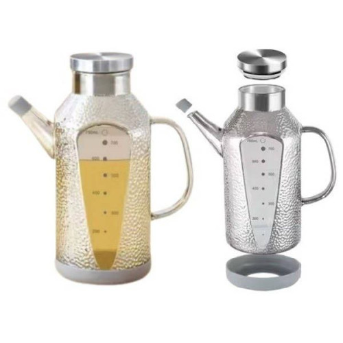 - Виготовлений з міцного харчового скла і нержавіючої сталі диспенсер для олії, призначений для безпечного і здорового приготування їжі