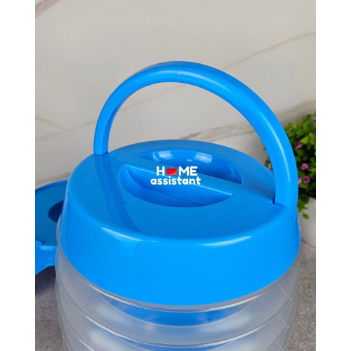 - Розбірна каністра з краном виготовляється з харчового пластику. Прозора колба зберігає залишки видимими.